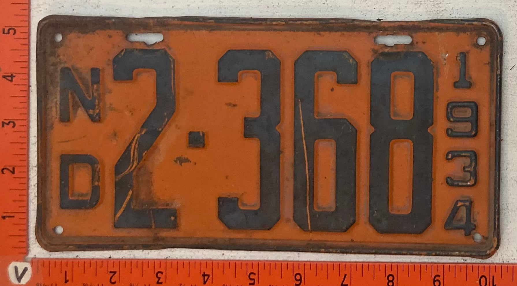 1934 North Dakota #2-368 Passenger License Plate