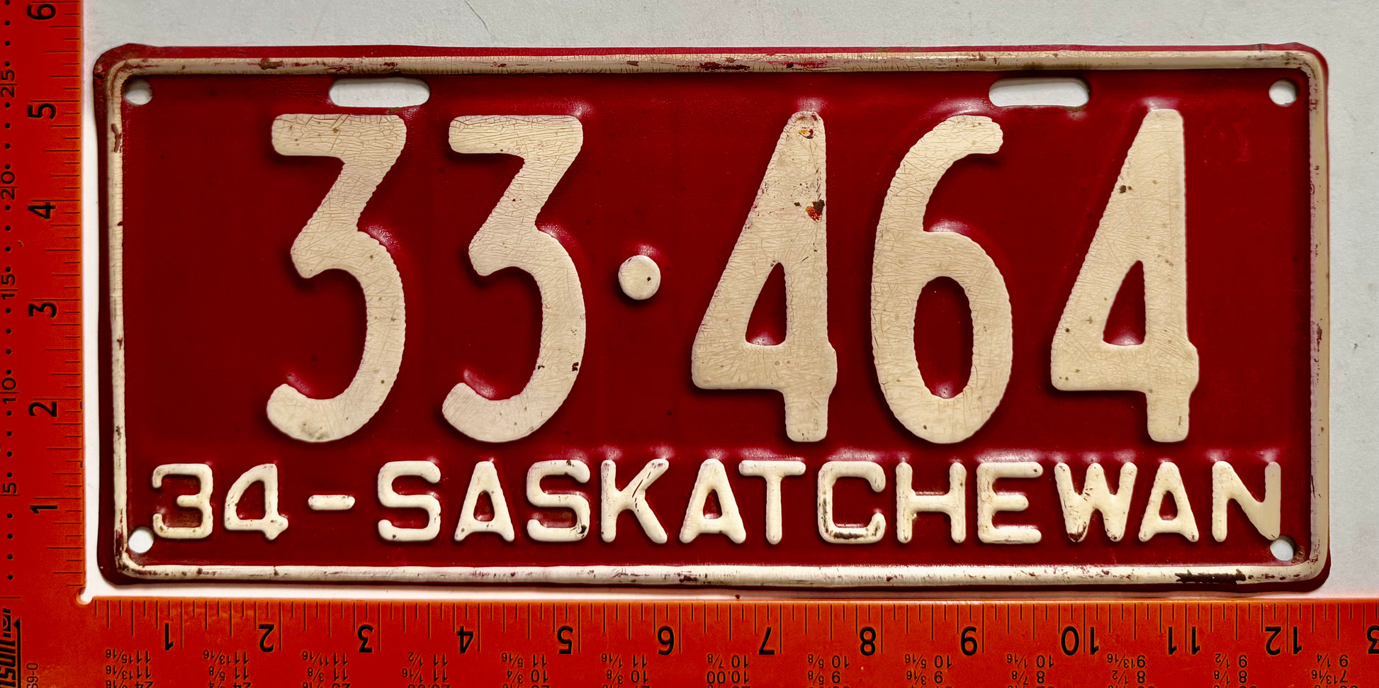 1934 Saskatchewan #33-464 Passenger License Plate