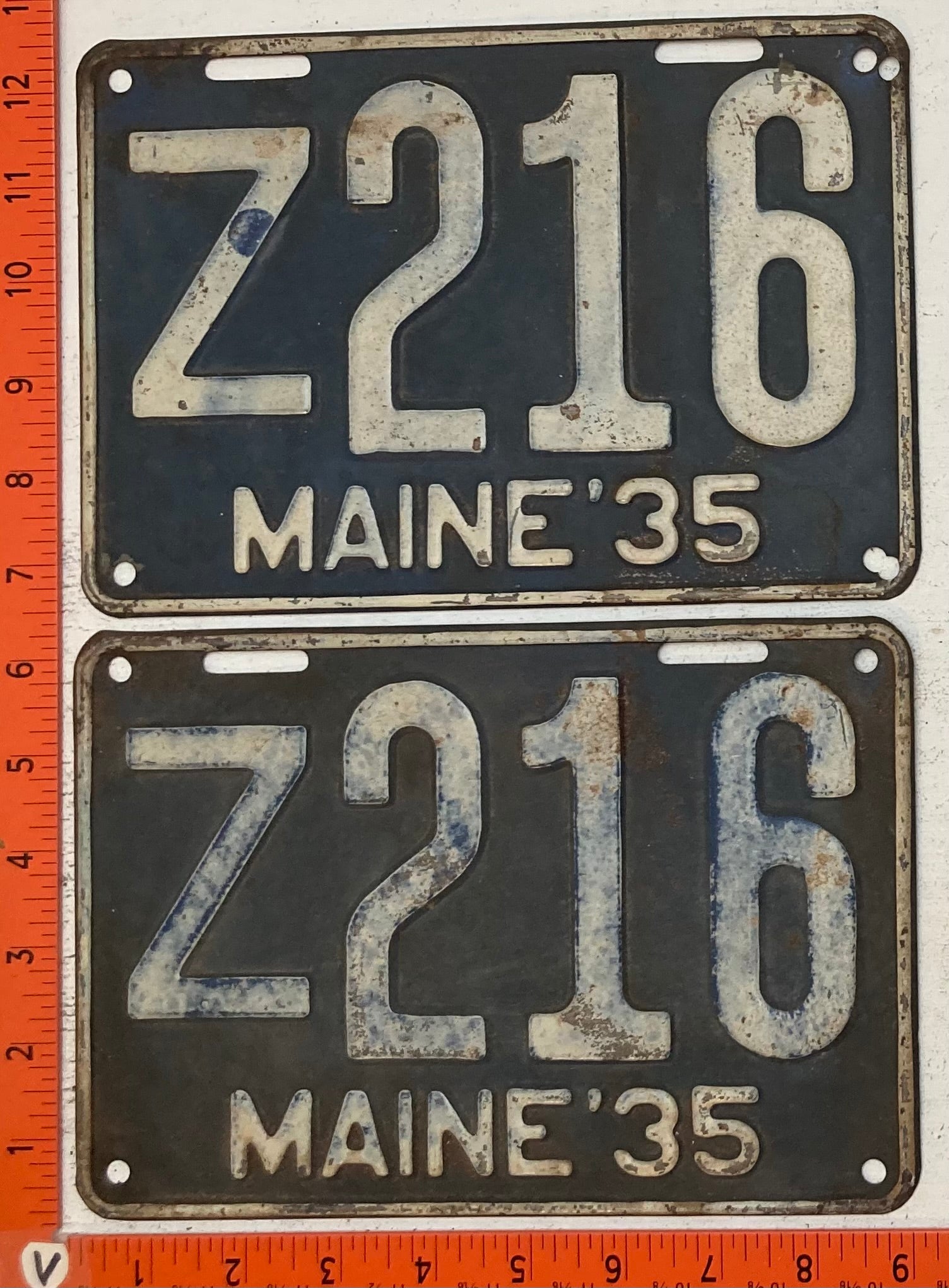 1935 Maine #Z216 Passenger License Plate (Pair)