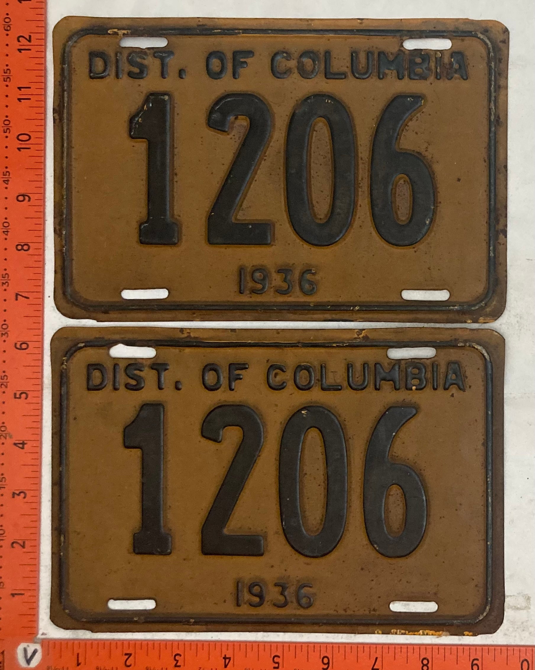 1936 Washington, DC #1206 Passenger License Plate (Pair)