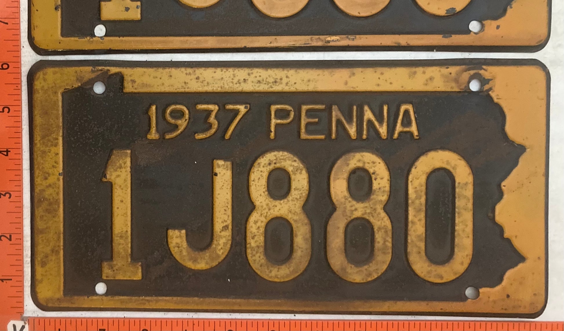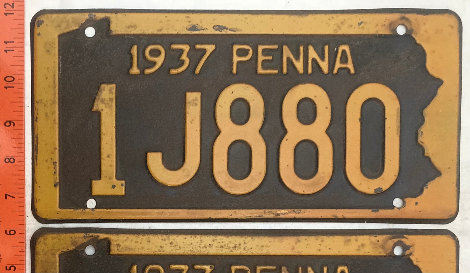1937 Pennsylvania #1J880 Passenger License Plate (Pair)