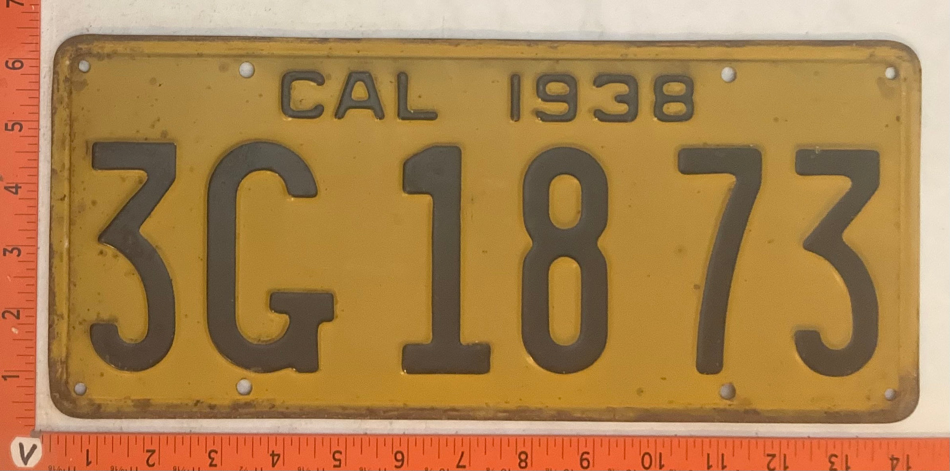 1938 California #3G 18 73 Passenger License Plate