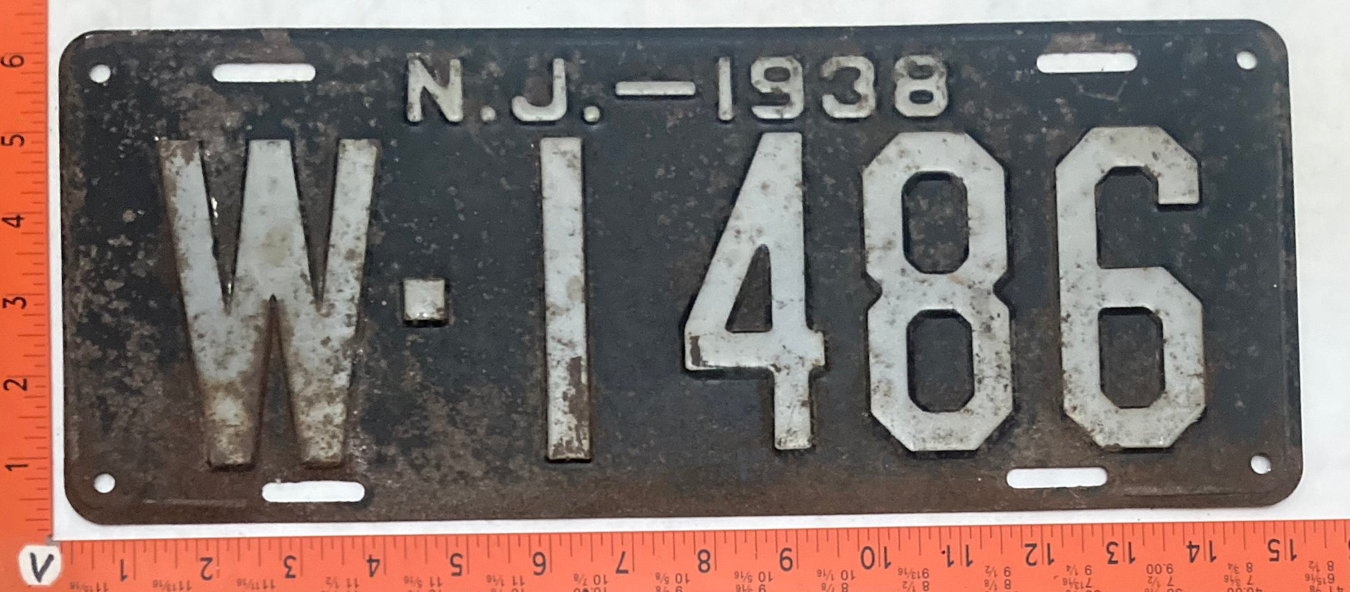 1938 New Jersey #W-1486 Passenger License Plate