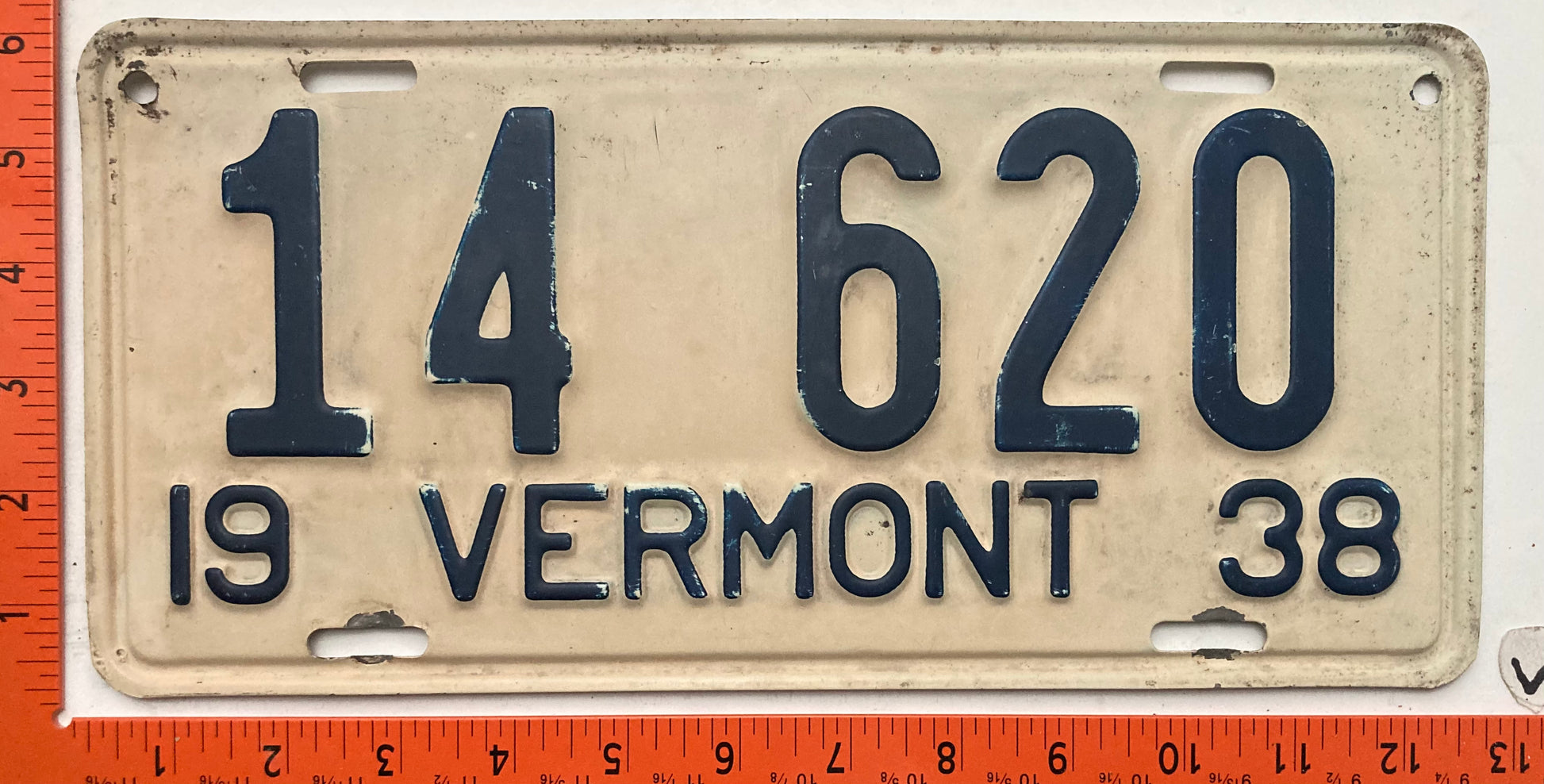 1938 Vermont #14 620 Passenger License Plate
