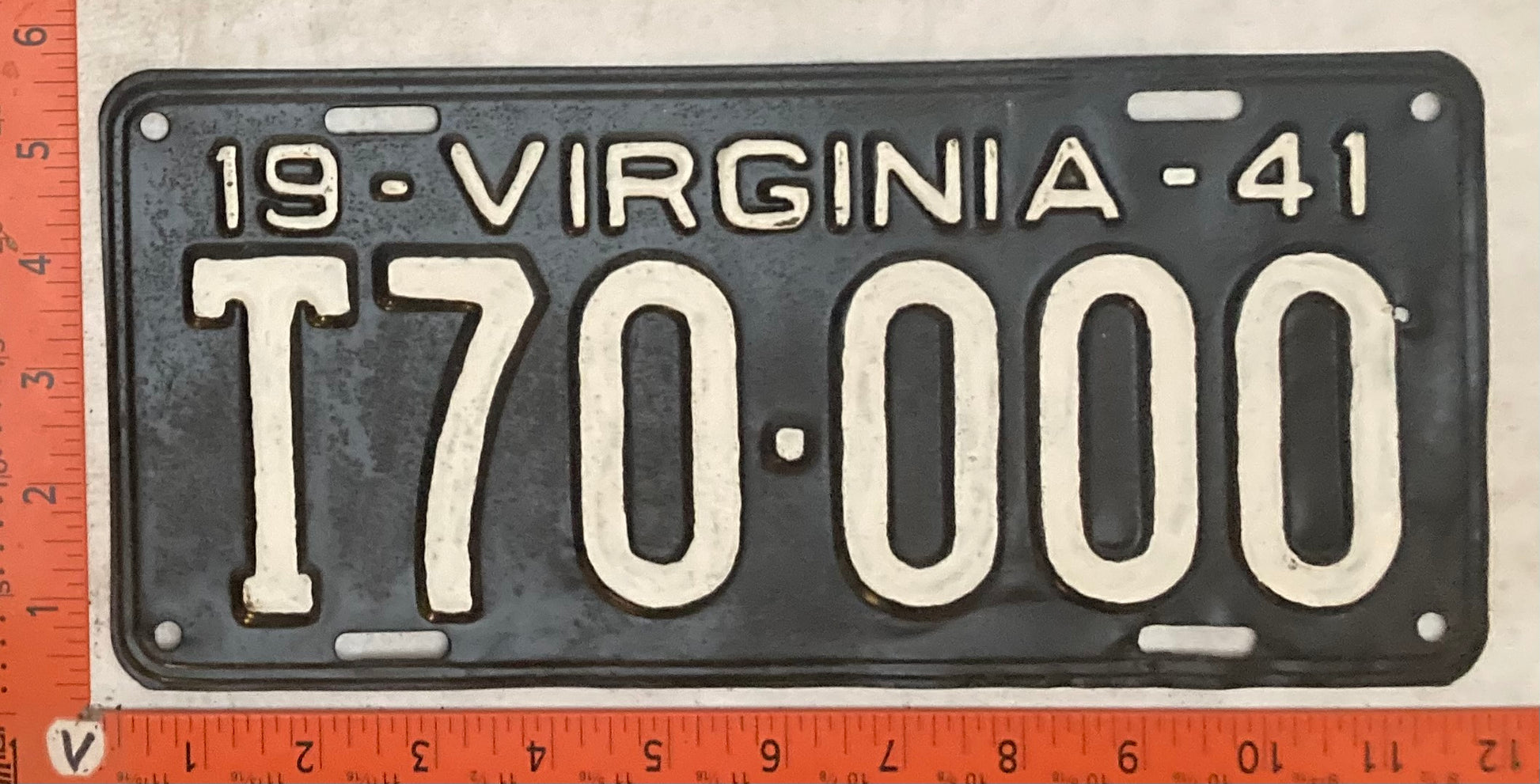 1941 Virginia #T70-000 Truck License Plate (Repainted)