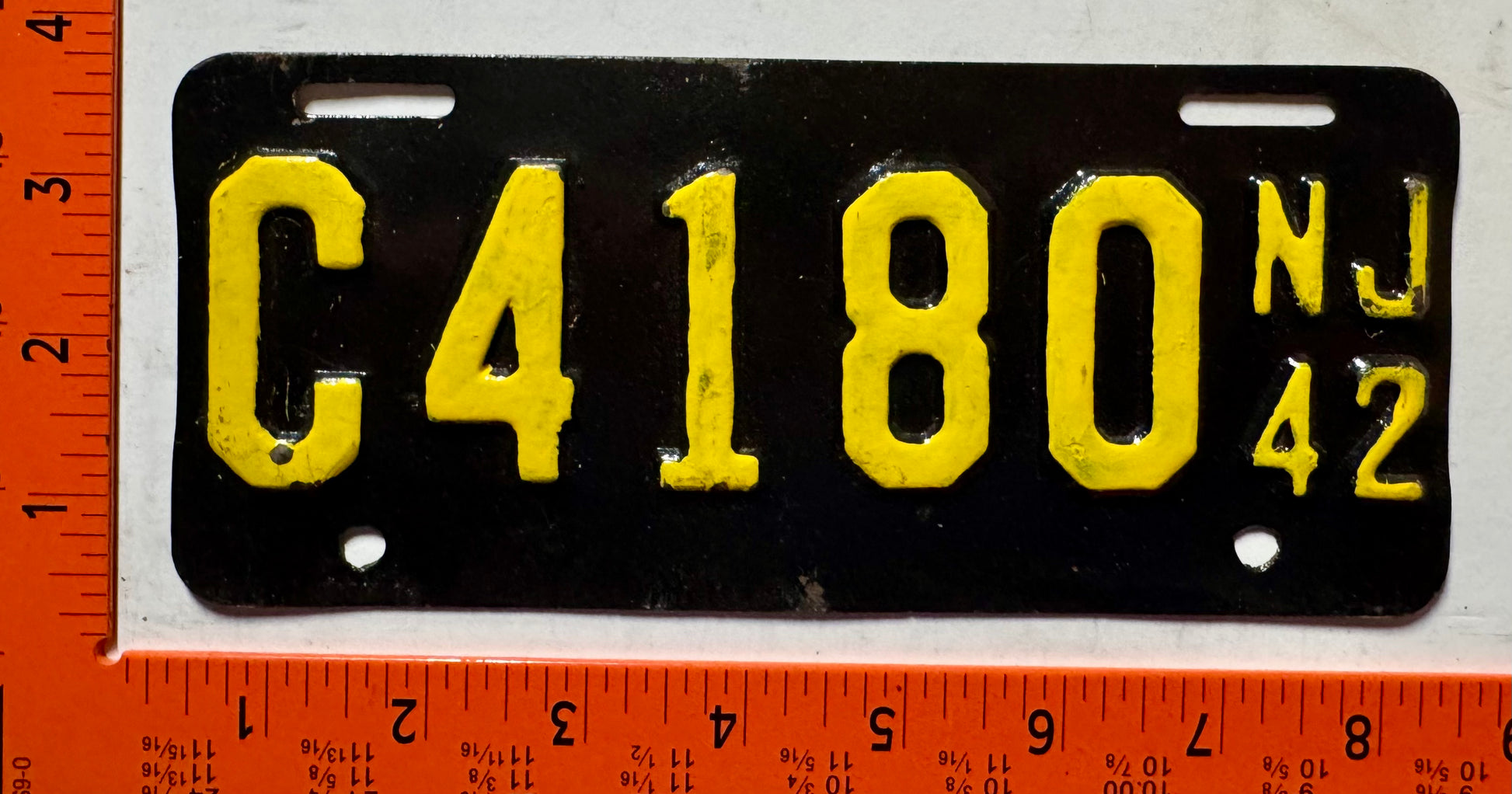 1942 New Jersey #C4180 Motorcycle License Plate (Repaint)