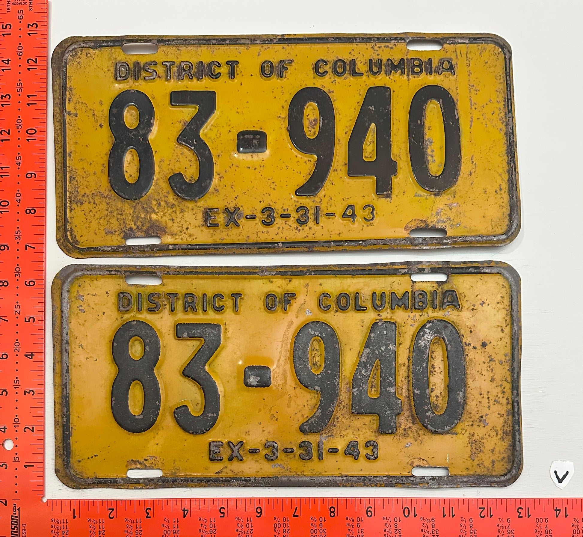 1943 Washington, DC #83-940 Passenger License Plate (Pair)