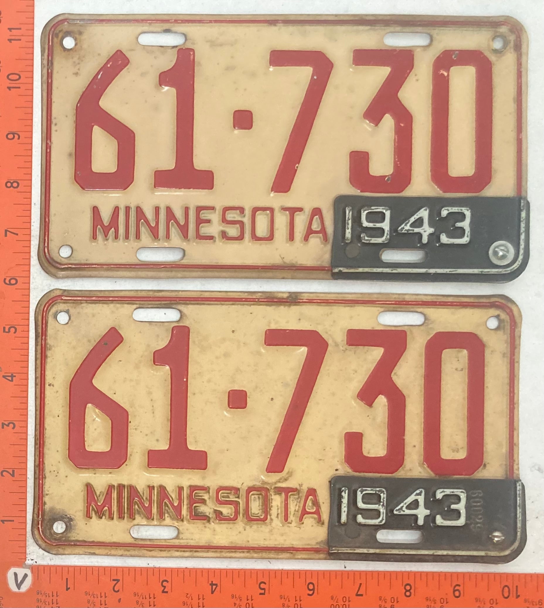 1943 Minnesota #61-730 Passenger License Plate (Pair)