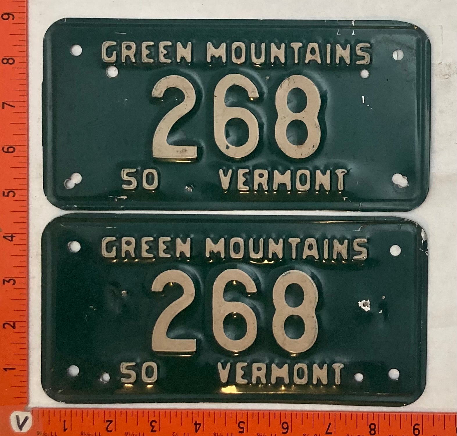 1950 Vermont #268 Motorcycle License Plate (Pair)