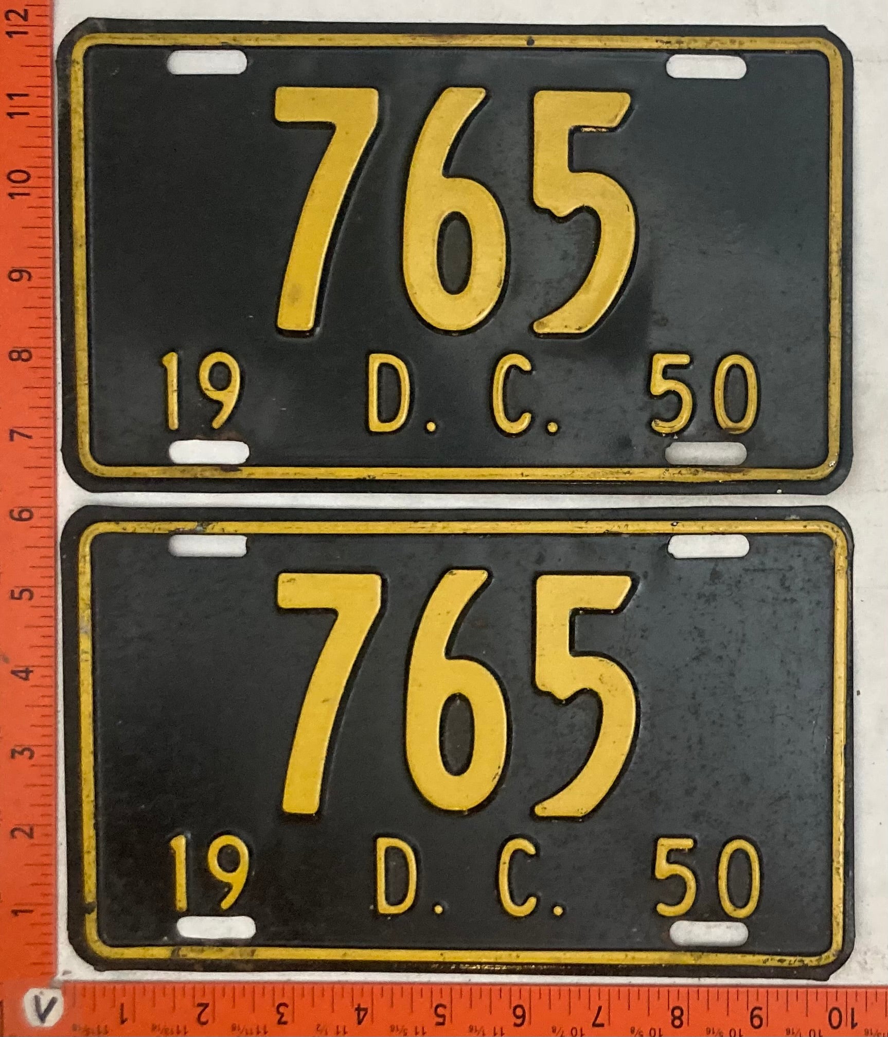1950 Washington, DC #765 Passenger License Plate (Pair)