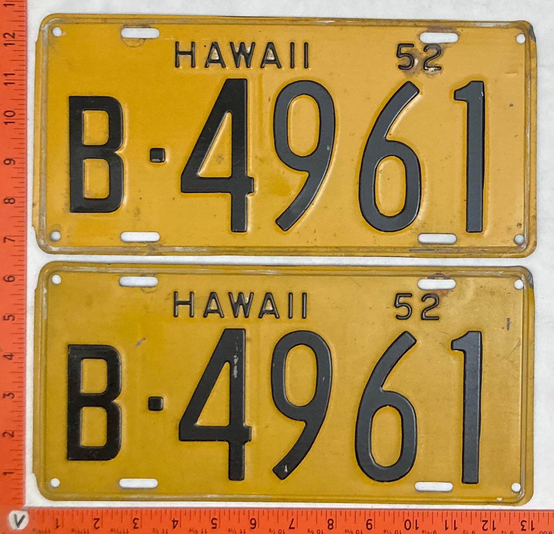 1952 Hawaii #B 4961 Passenger License Plate (Pair)