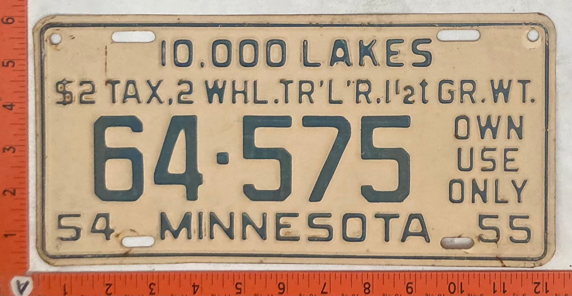 1954 - 55 Minnesota #64-575 Private Trailer License Plate