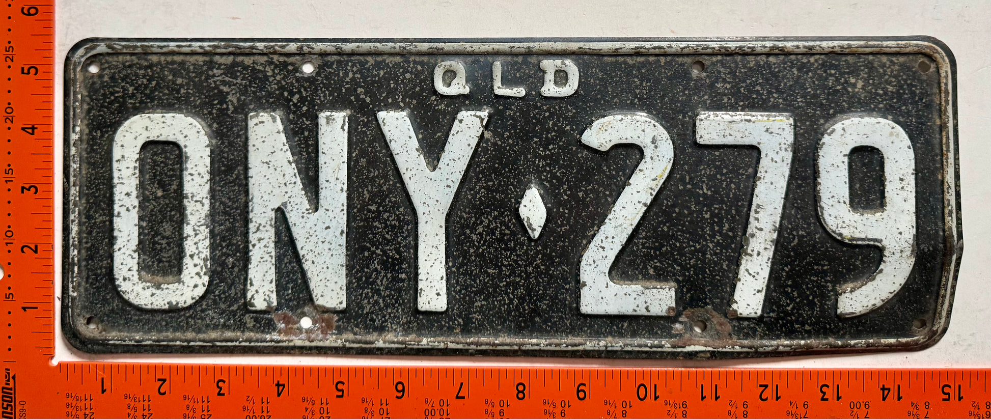 1955 base Queensland, Australia #QNY-279 Passenger License Plate