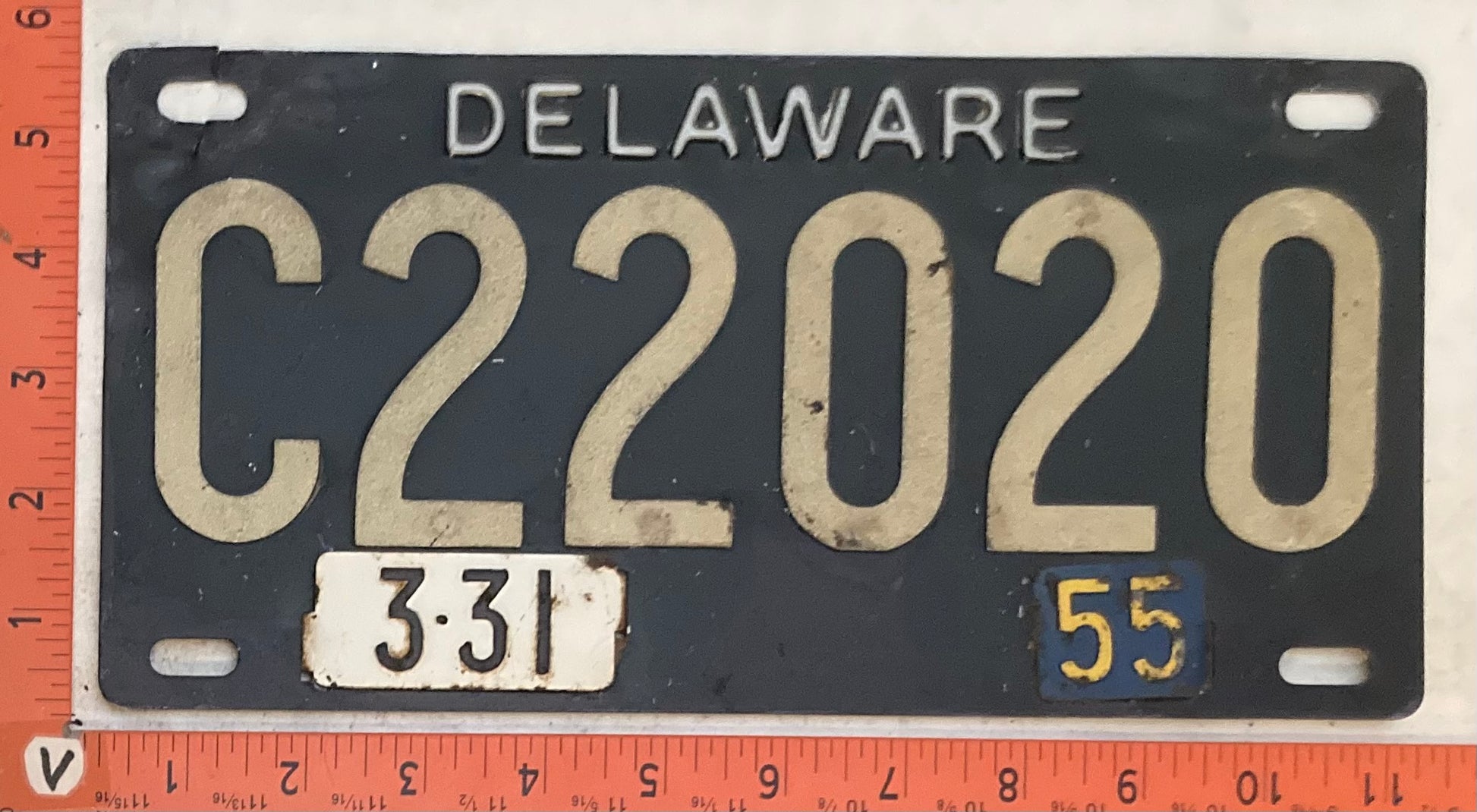 1955 Delaware #C22020 Commercial License Plate (Re-riveted)