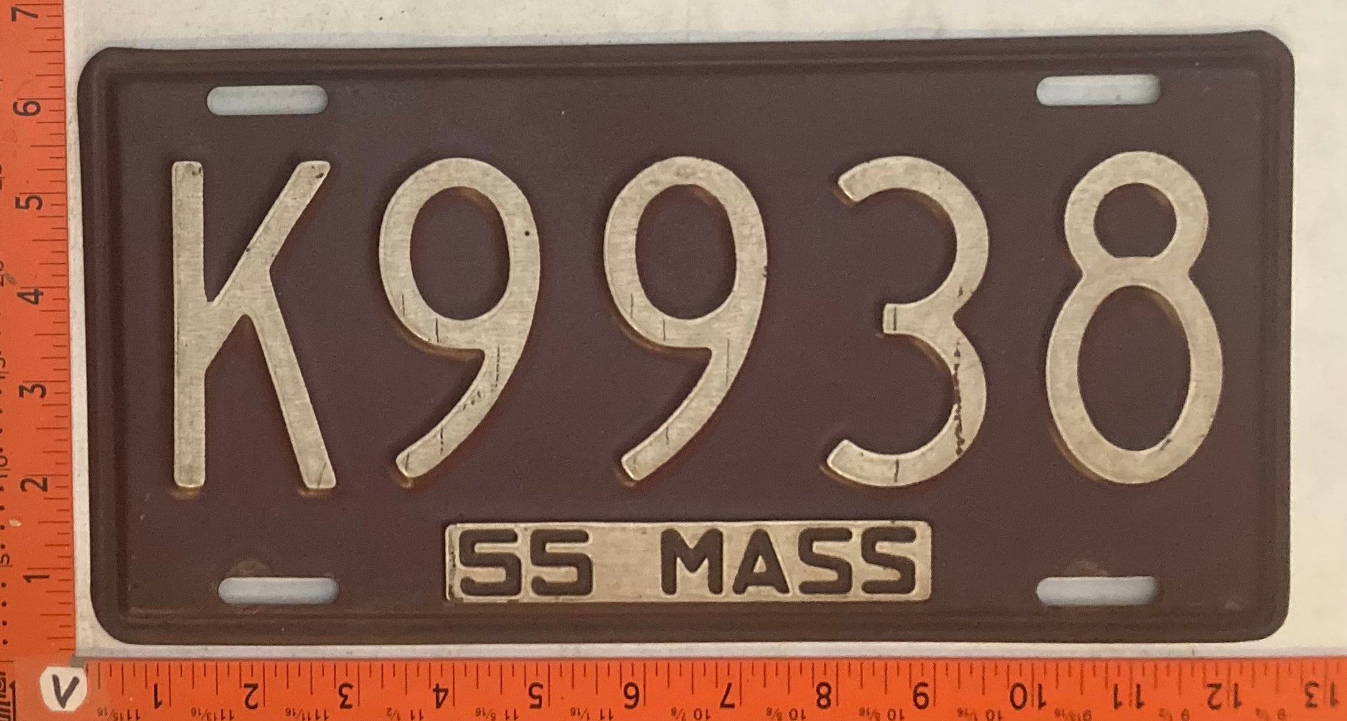 1955 Massachuetts #K9938 Passenger License Plate
