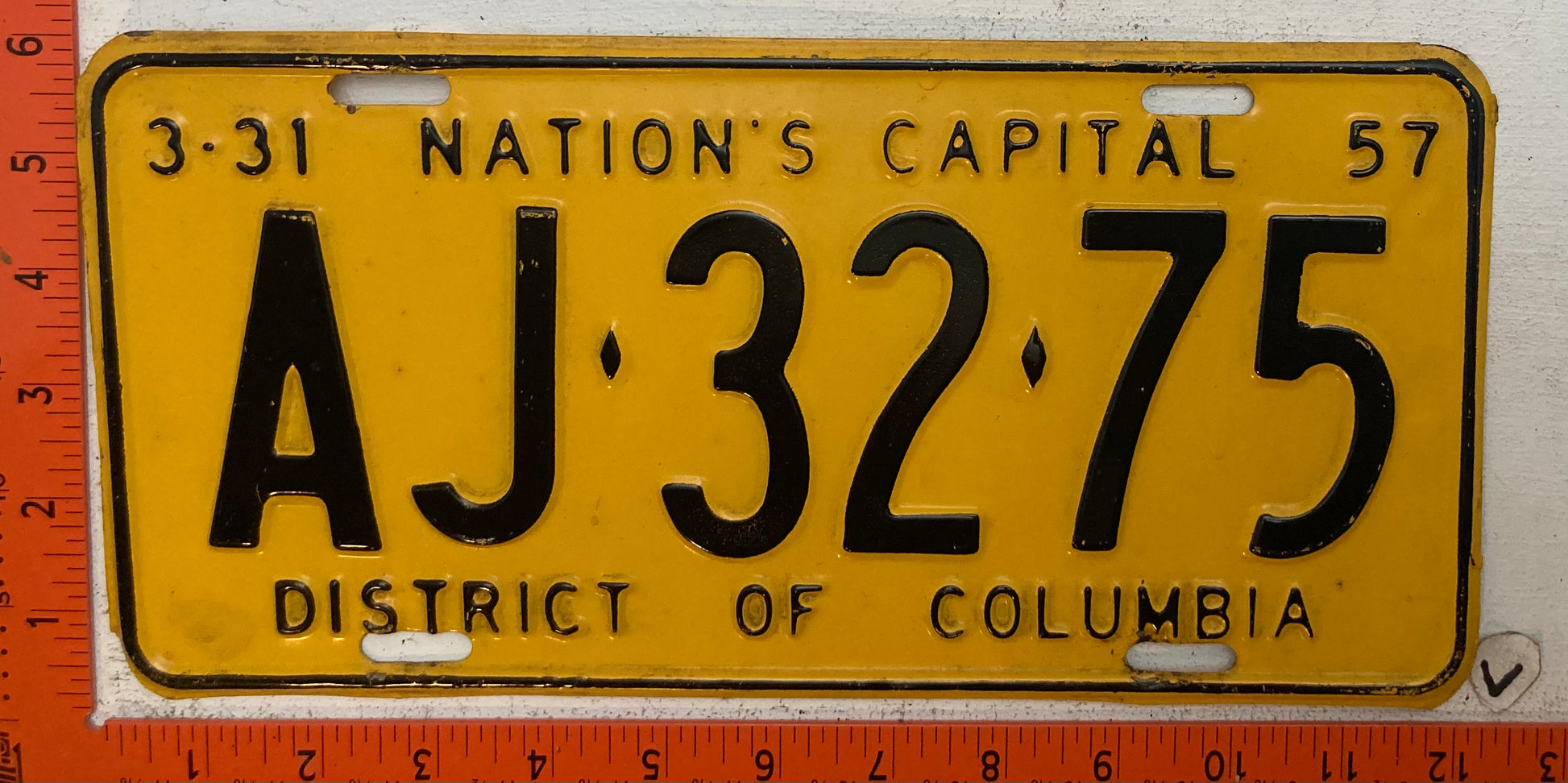 1957 Washington, DC #AJ-32-75 Passenger License Plate