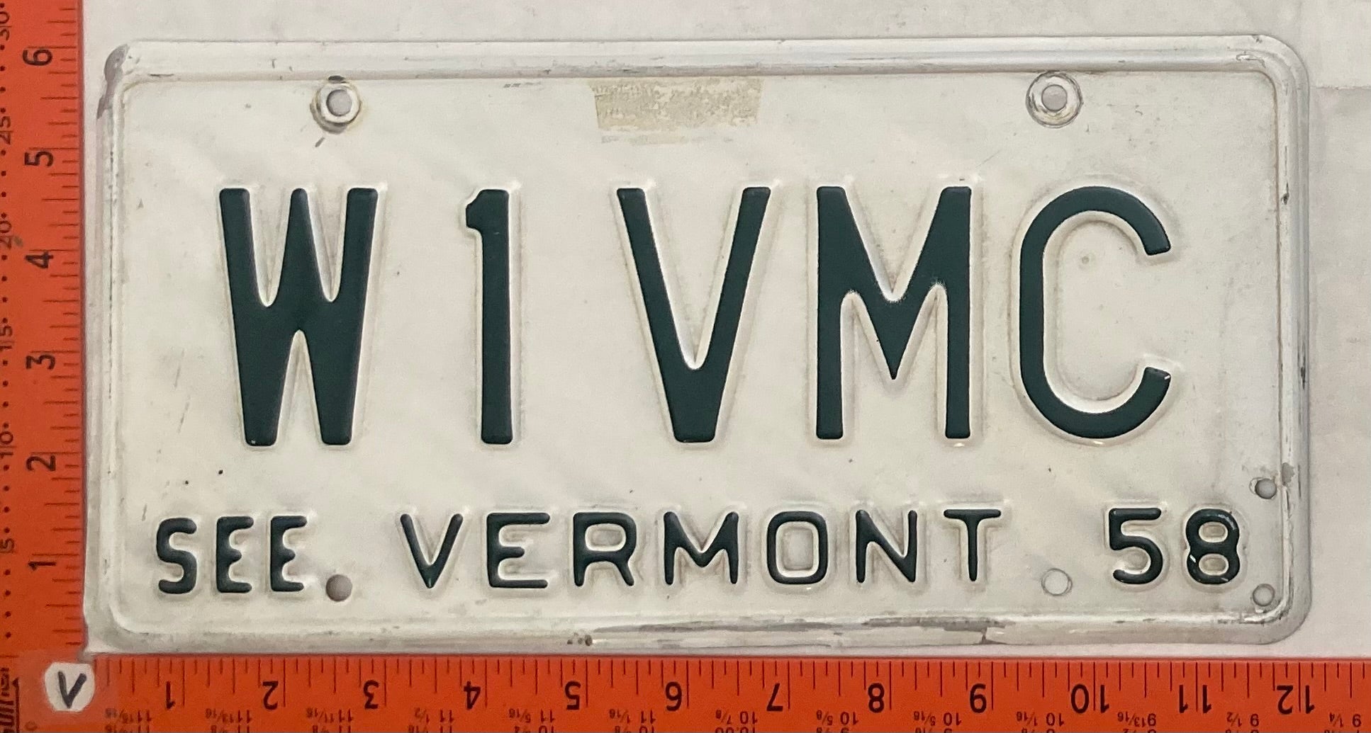 1958 Vermont #W1VMC Ham Radio Passenger License Plate