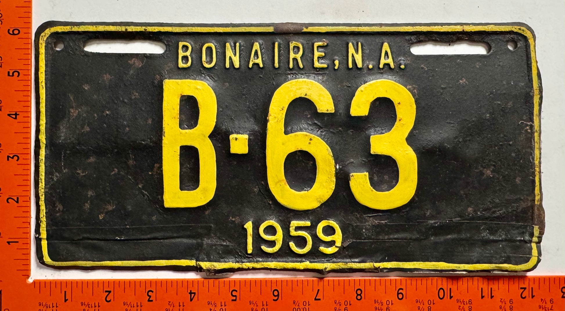 1959 Bonaire #B-63 Passenger License Plate (Restored)