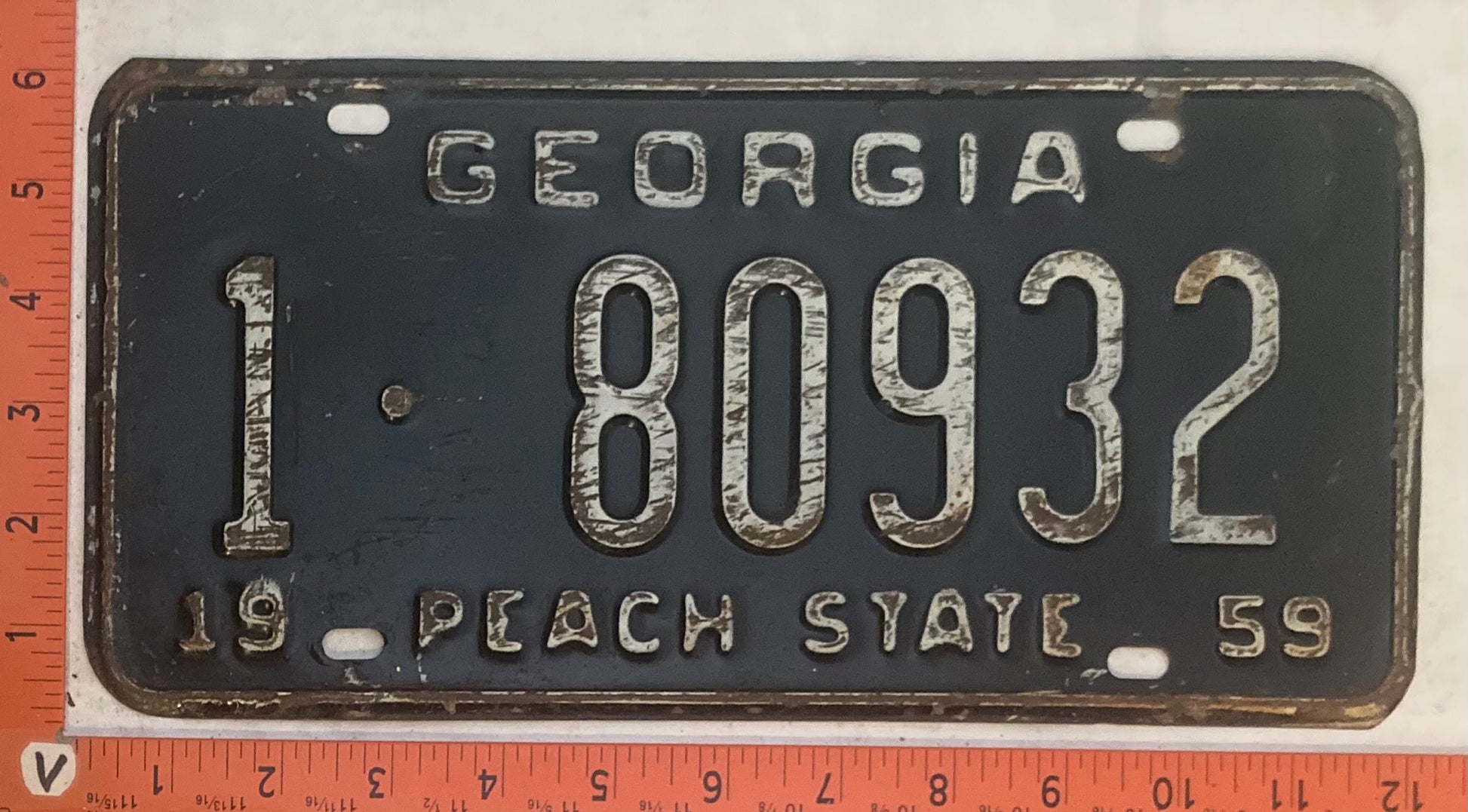 1959 Georgia #1-80932 Passenger License Plate