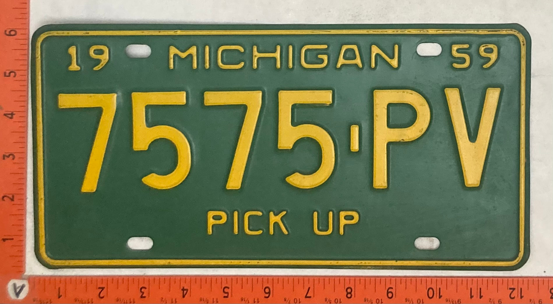1959 Michigan #7575 PV Pick Up Truck License Plate