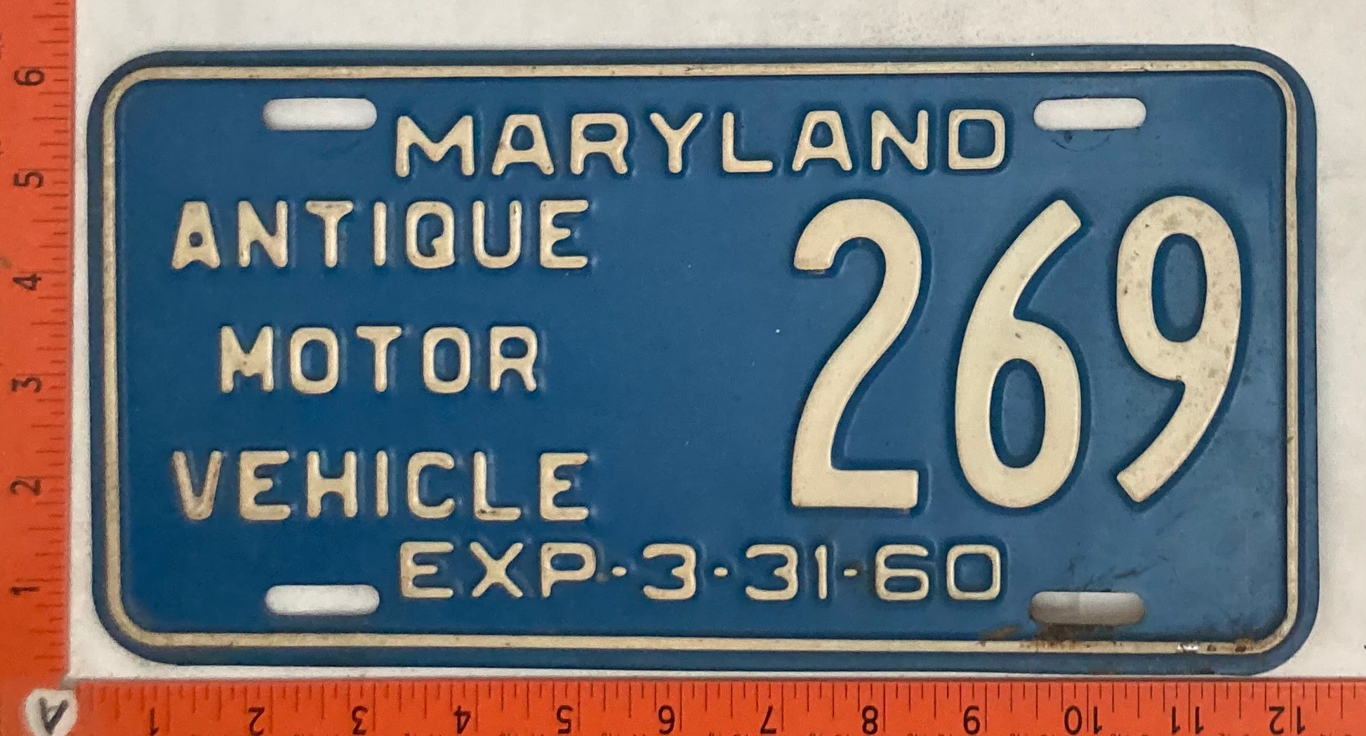 1960 Maryland #269 Historic Motor Vehicle License Plate