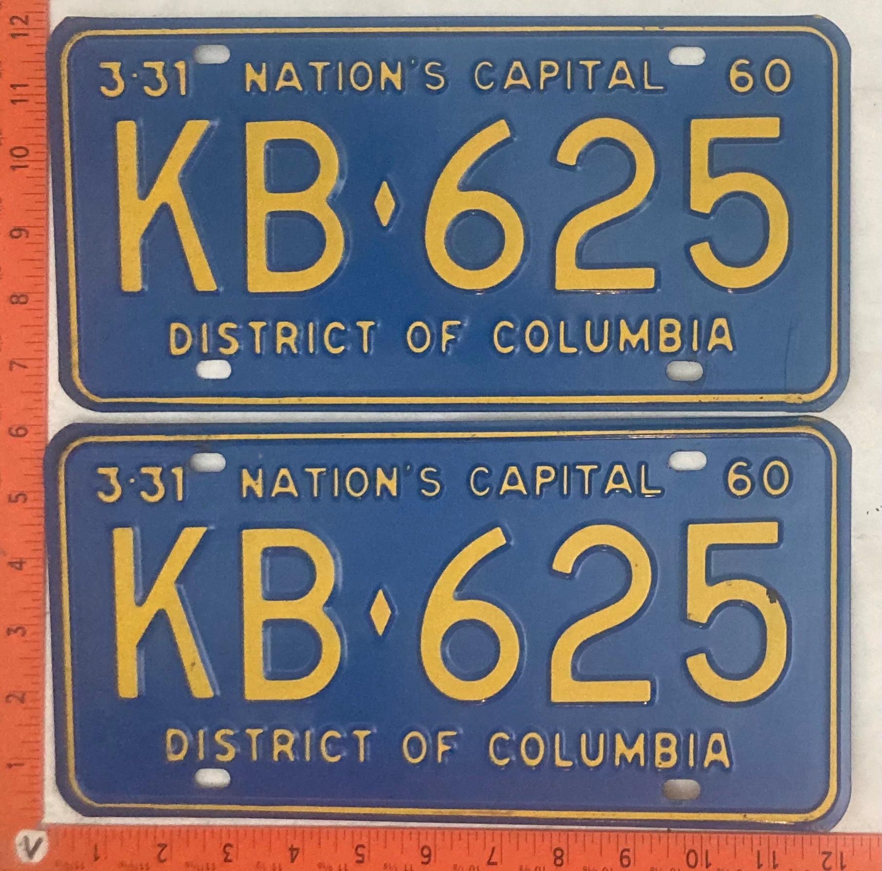 1960 Washington, DC #KB-625 Passenger License Plate (Pair)