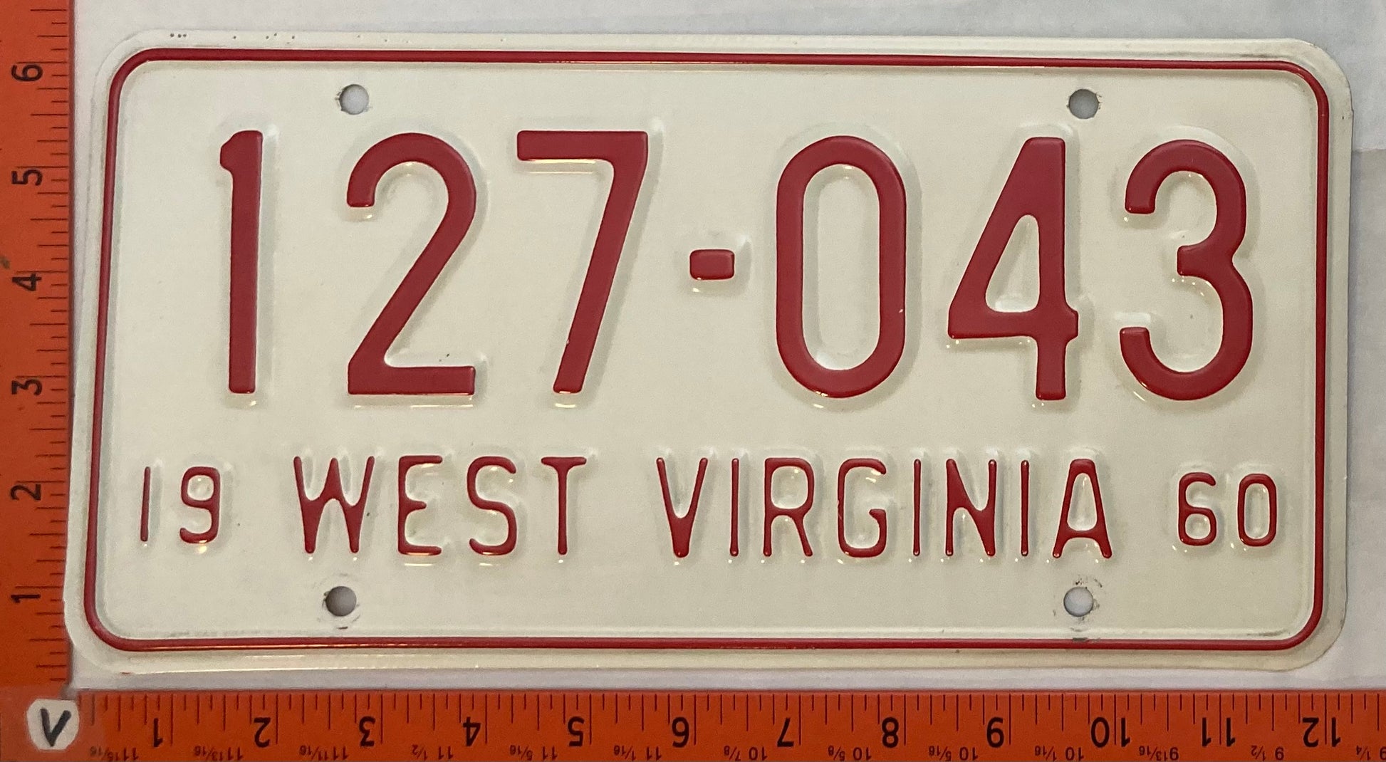1960 West Virginia #127-043 Passenger License Plate