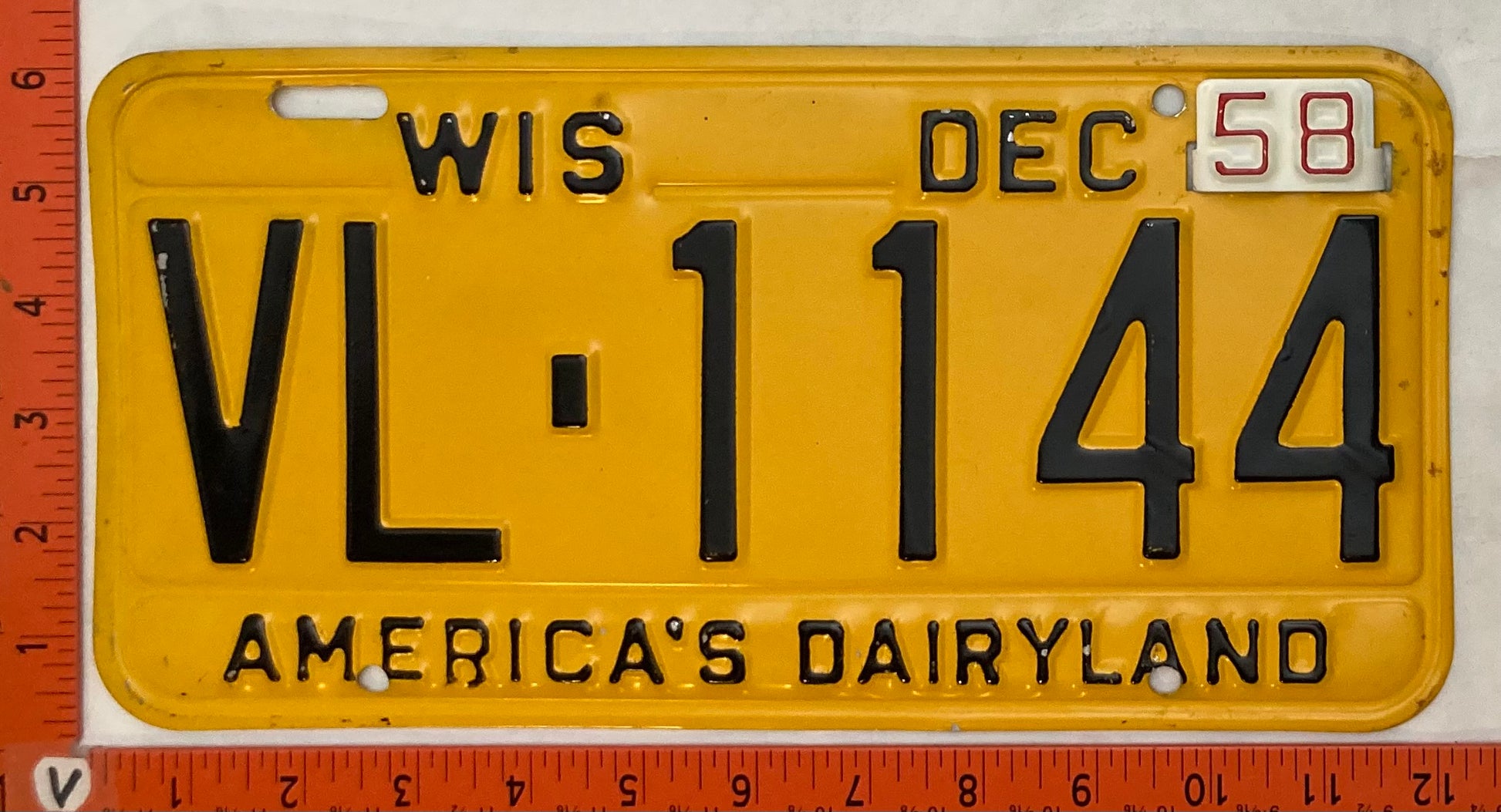1958 Wisconsin #VL-1144 Passenger License Plate