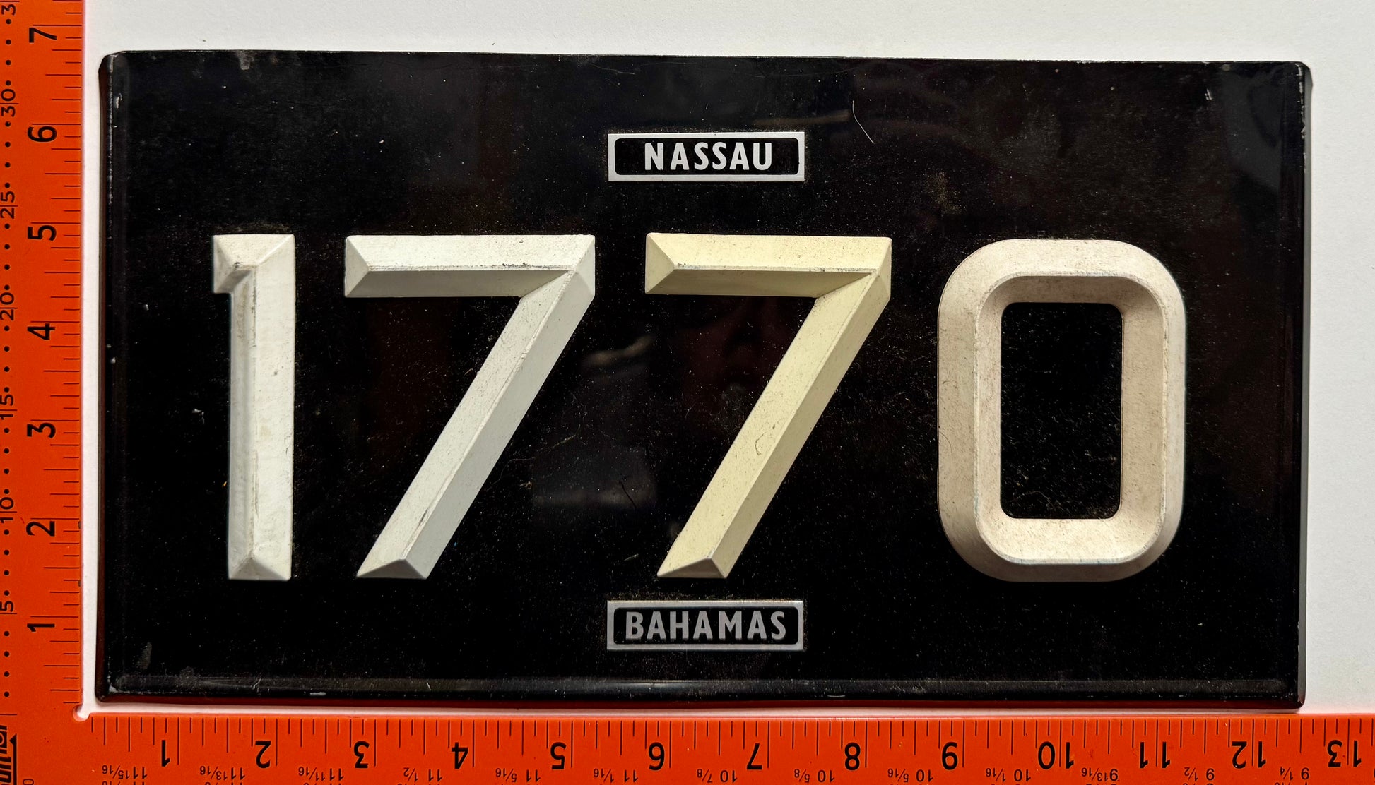 Notes: Plastic numbers on aluminum back - remake of a 1950s number