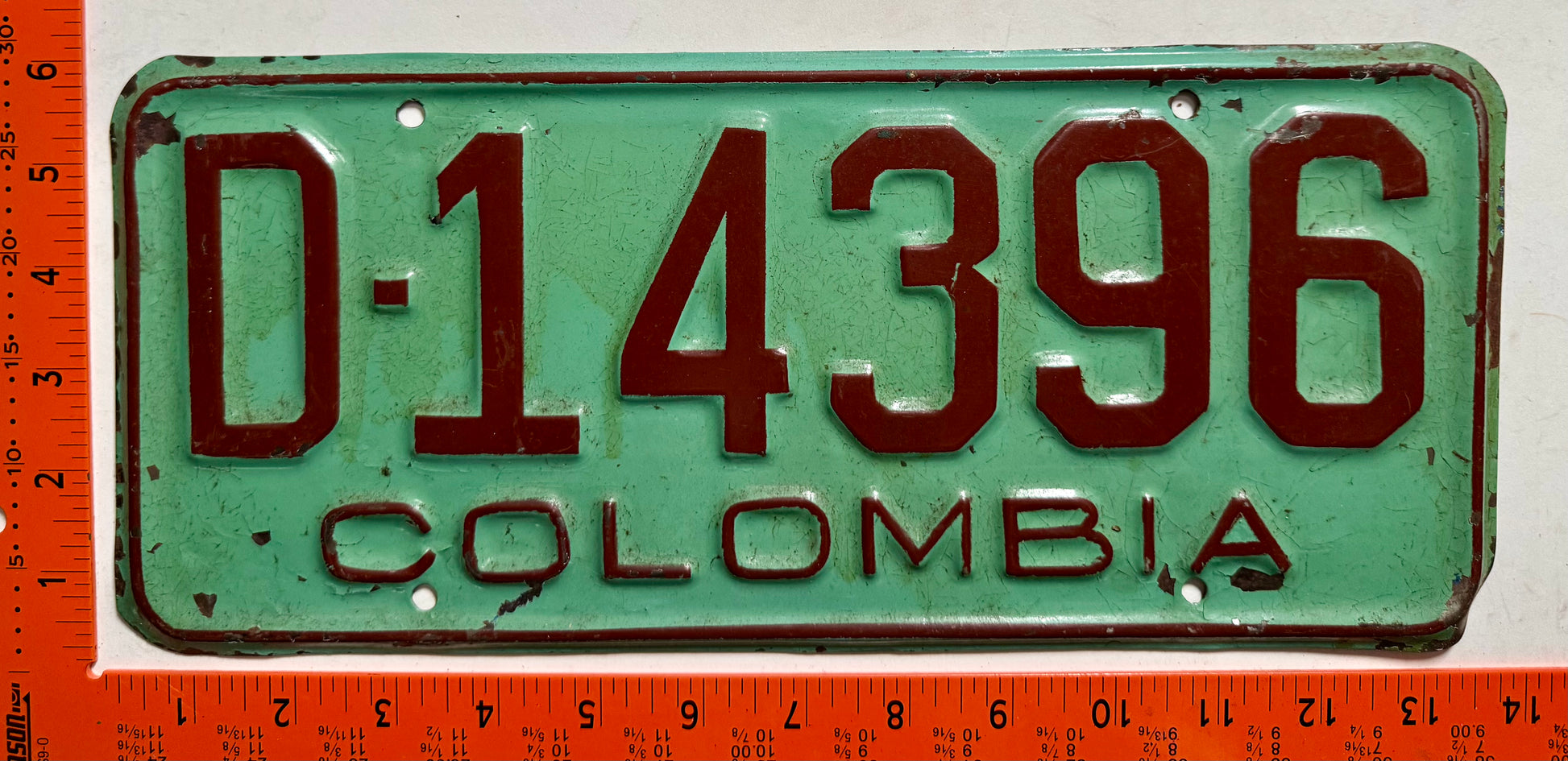 1961-1963 Colombia #D-14396 Passenger License Plate