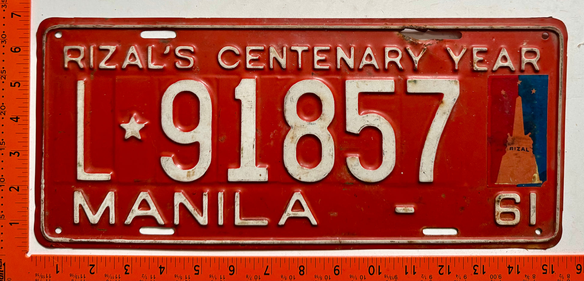 1961 Manila, Philippines #L*91857 Passenger License Plate