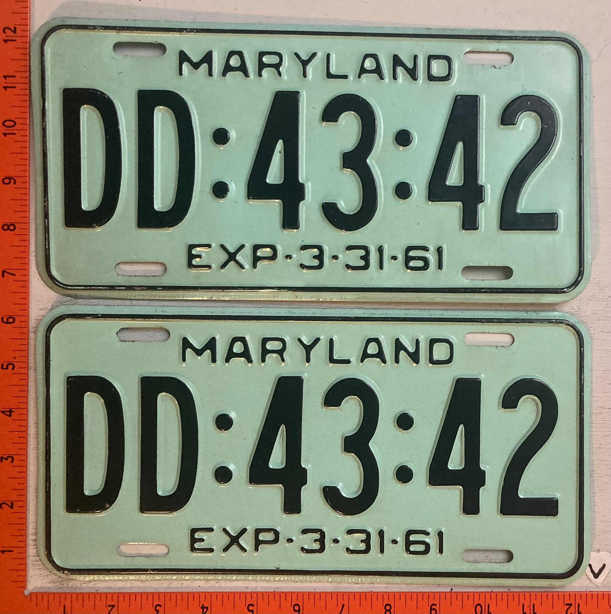 1961 Maryland #DD-43-42 Passenger License Plate (Pair)