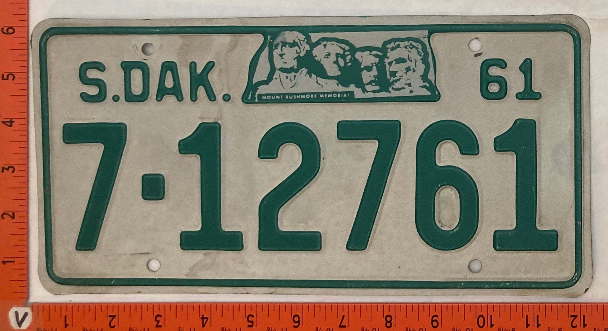1961 South Dakota #7-12761 Passenger License Plate