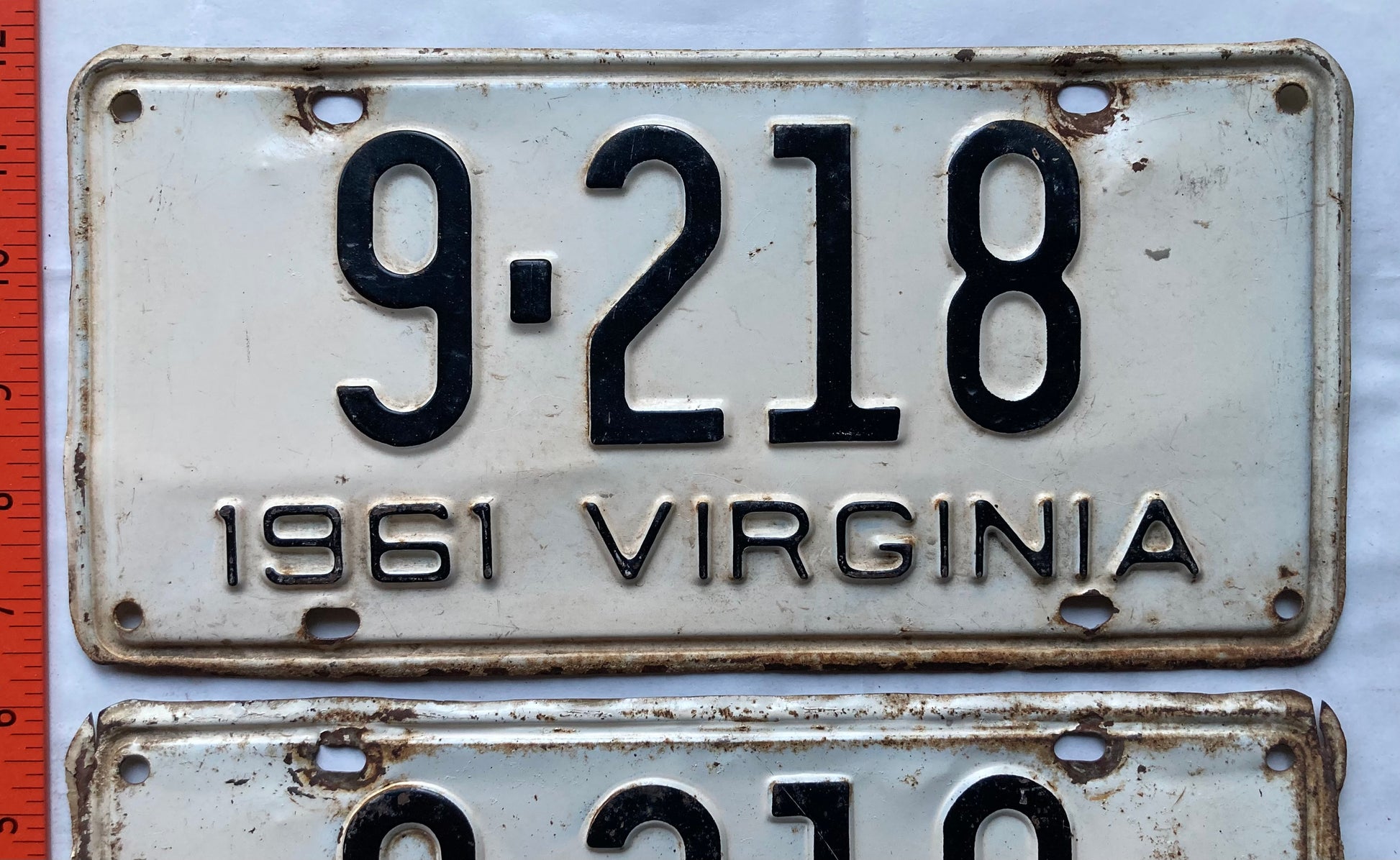 1961 Virginia #9-218 Passenger License Plate (Pair)