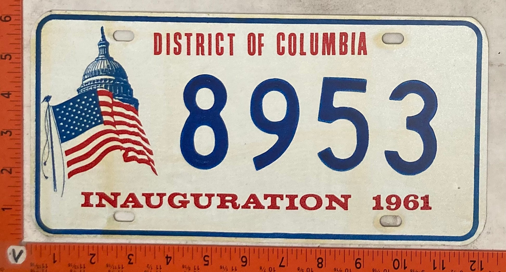 1961 Washington, DC #8953 Presidential Inaugural Passenger License Plate