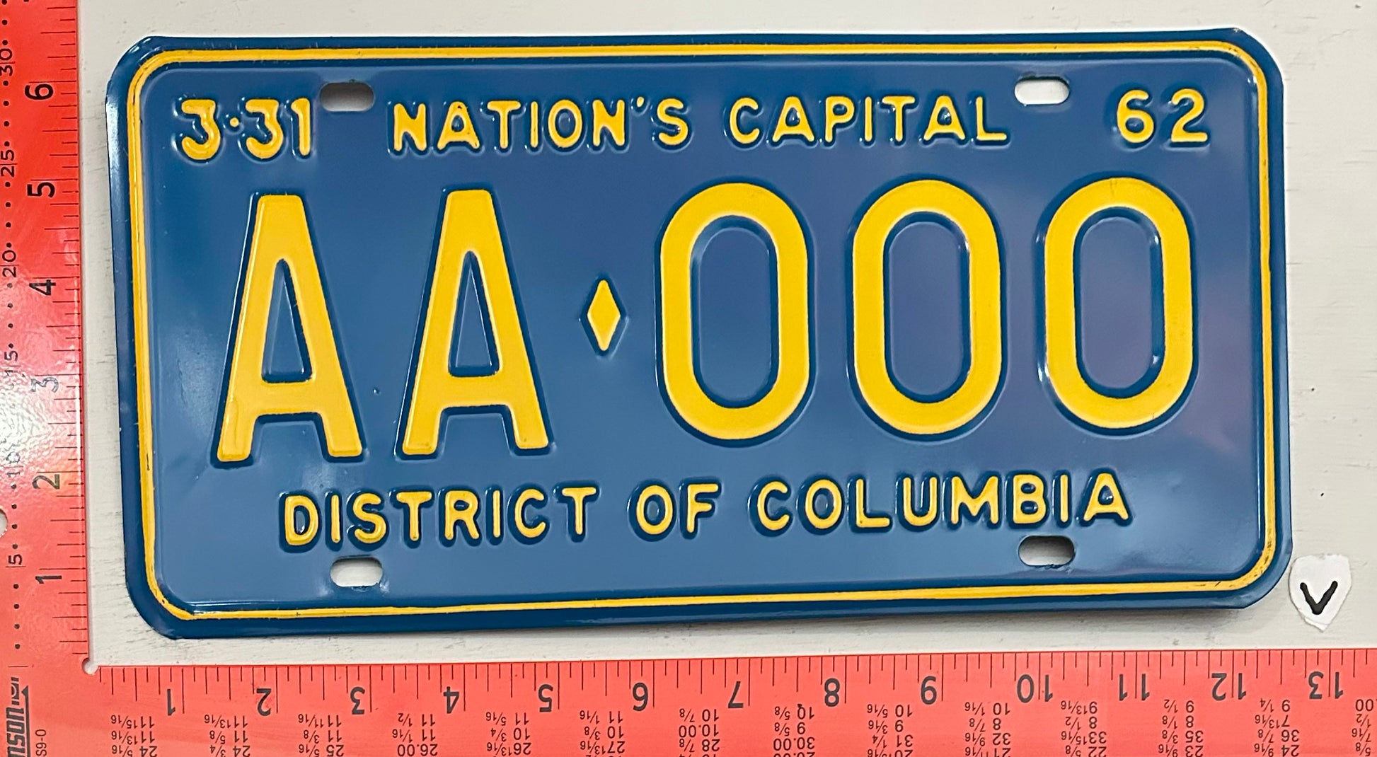 1962 Washington, DC #AA-000 Sample License Plate