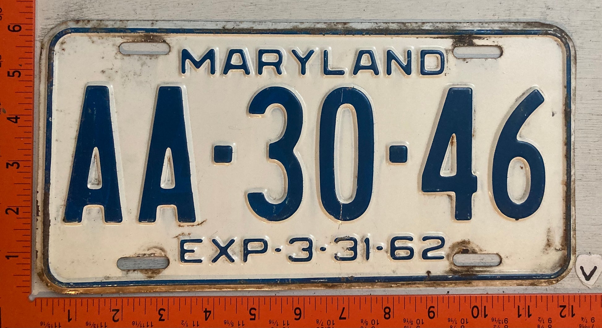1962 Maryland #AA-30-46 Passenger License Plate
