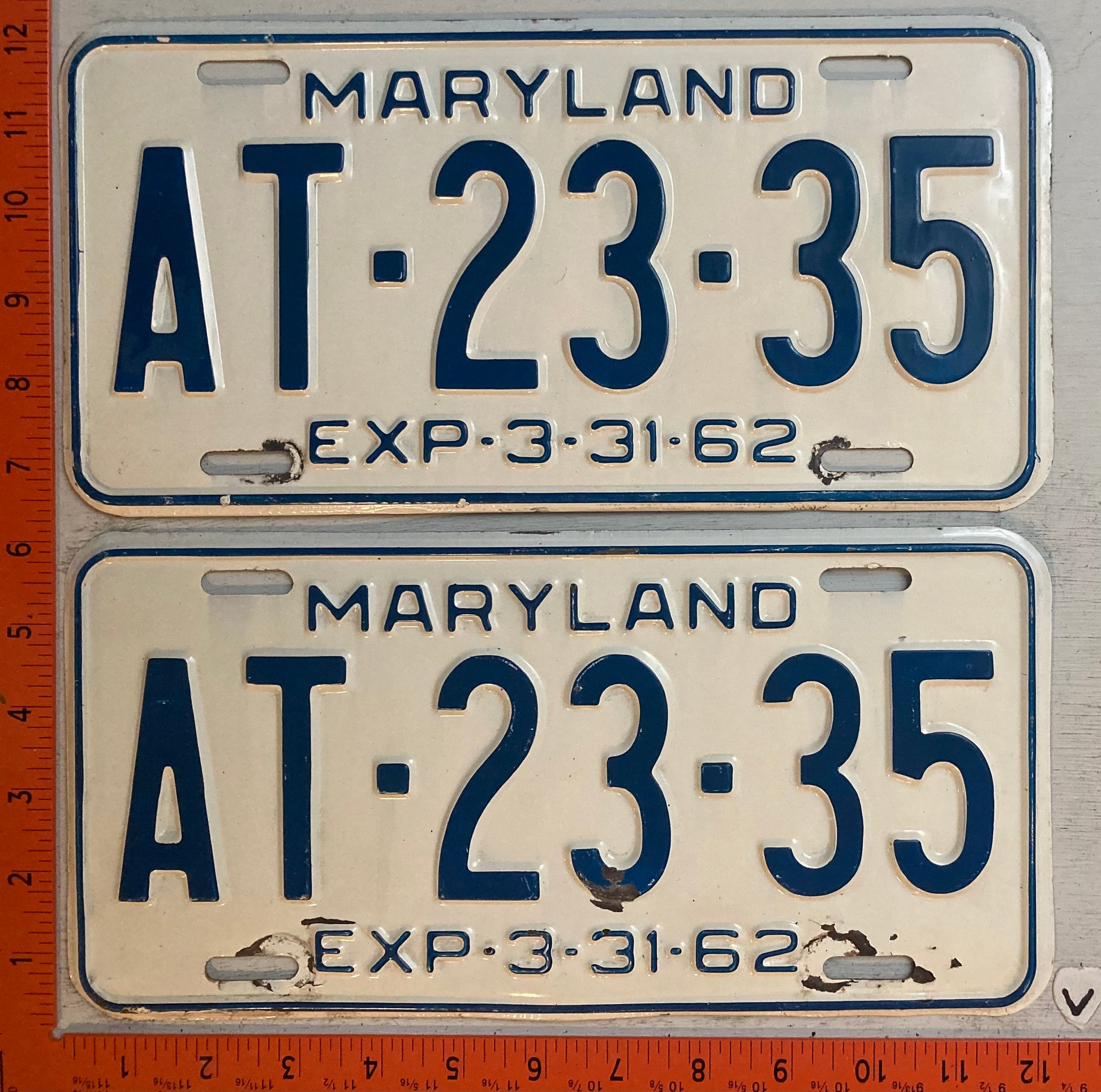 1962 Maryland #AT-23-35 Passenger License Plate (Pair)