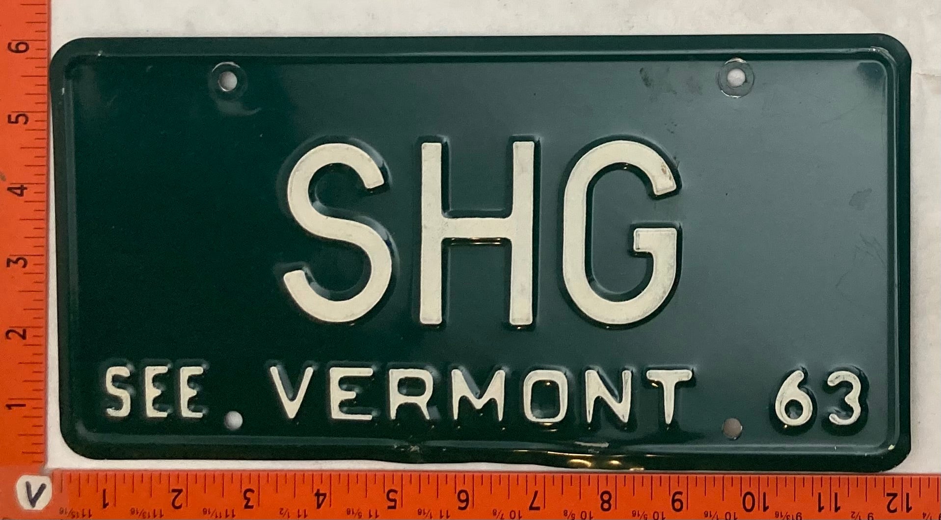 1963 Vermont #SHG Passenger License Plate (Vanity)