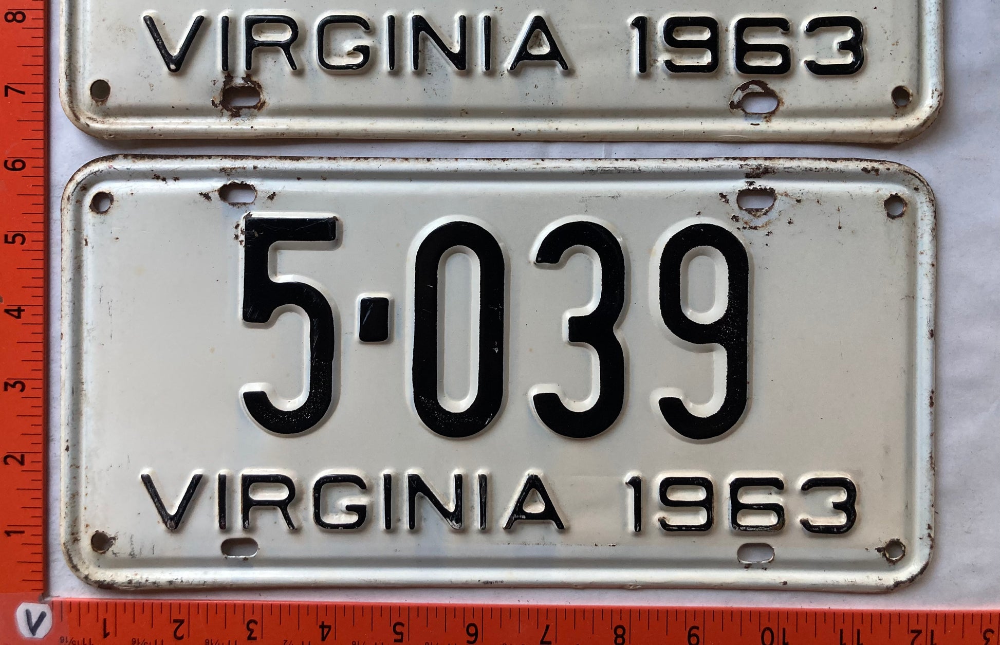 1963 Virginia #5-039 Passenger License Plate (Pair)