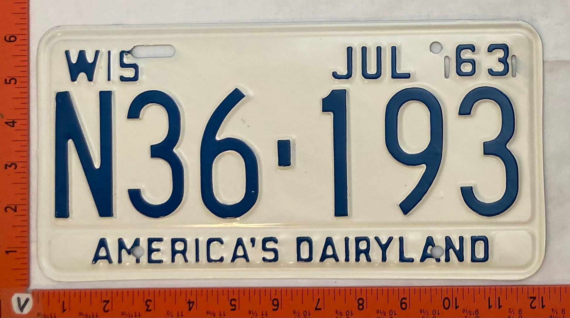 1963 Wisconsin #N36-193 Passenger License Plate