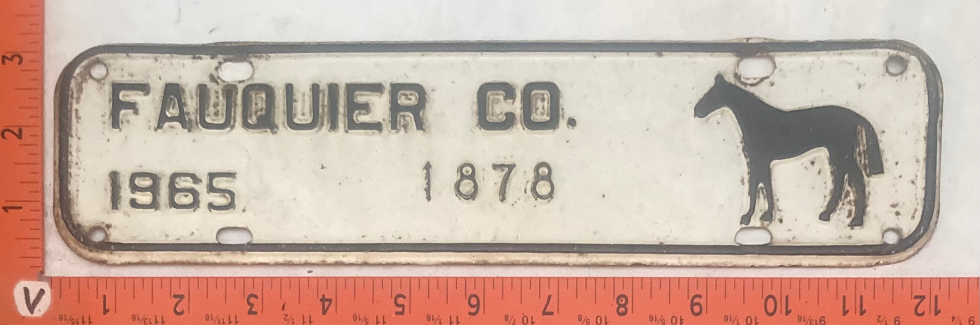 1965 Fauquier County Virginia #1878 License Plate