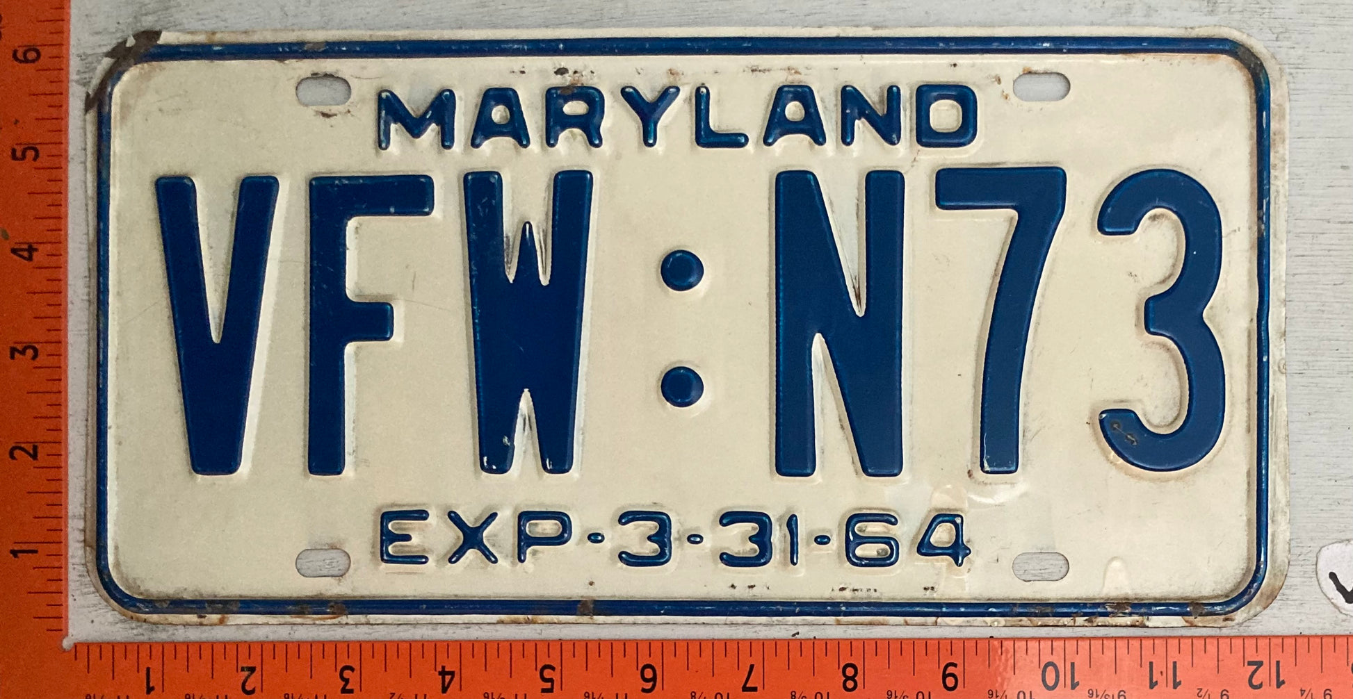 1964 Maryland #VFW-N73 VFW Passenger License Plate