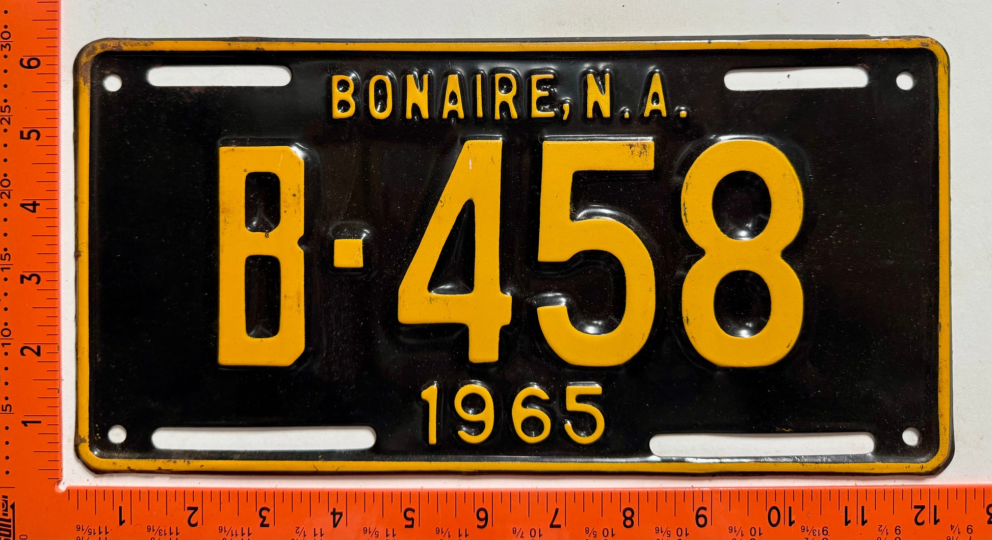 1965 Bonaire #B-458 Passenger License Plate