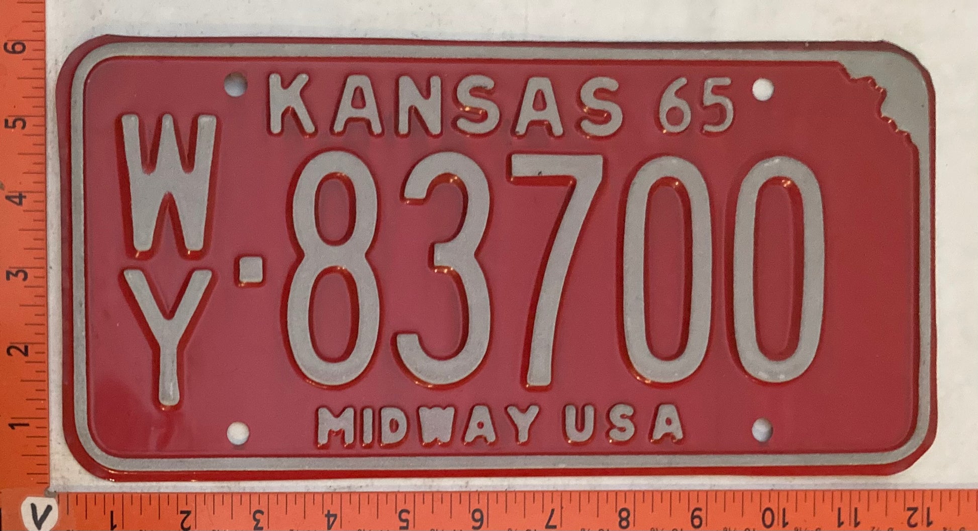 1965 Kansas #W/Y-83700 Passenger License Plate