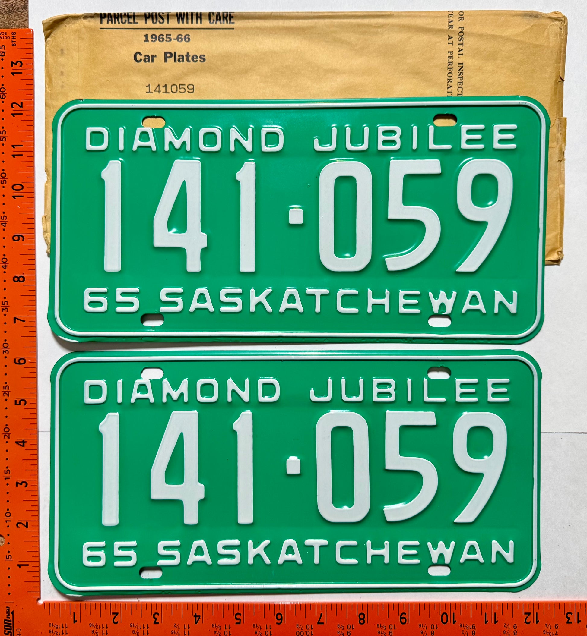 1965 Saskatchewan #141-059 Passenger License Plate Pair w/keychain tags