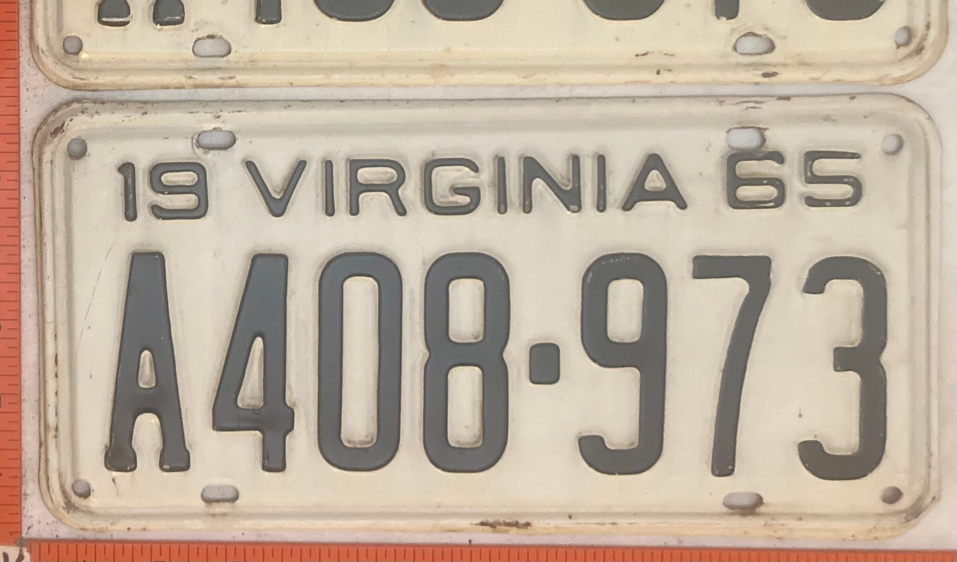 1965 Virginia #A408-973 Passenger License Plate (Pair)
