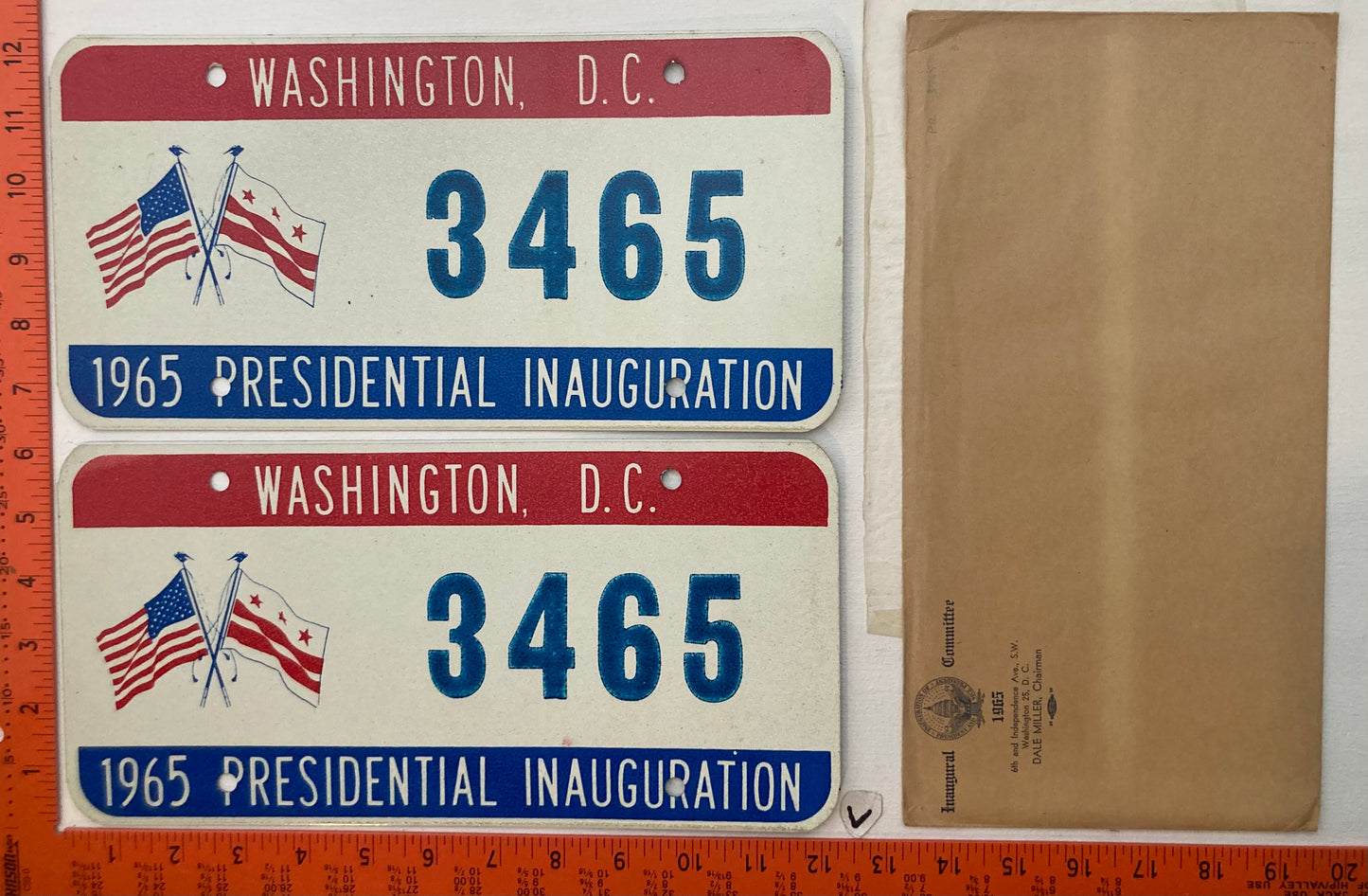 1965 Washington, DC #3465 Presidential Inaugural Passenger License Plate PAIR