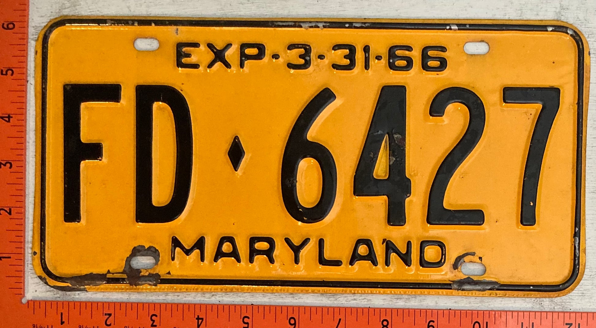 1966 Maryland #FD-6427 Fire Department Passenger License Plate