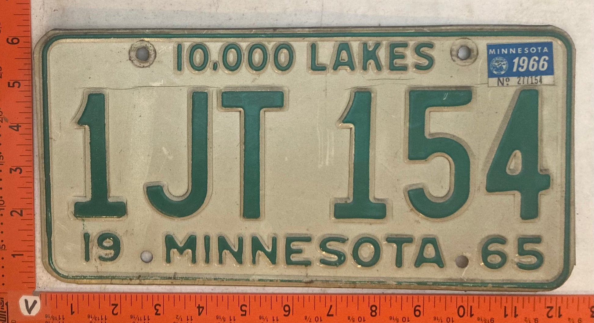 1966 Minnesota #1JT 154 Passenger License Plate